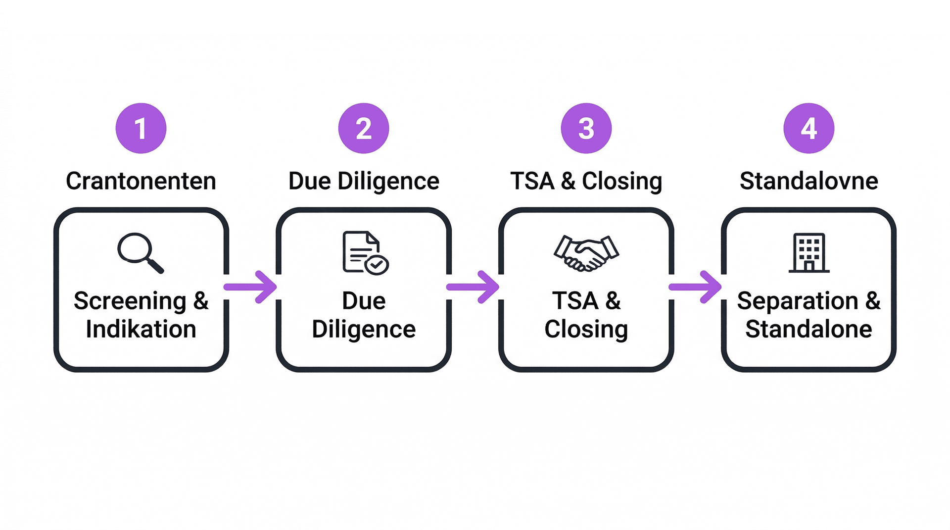 Drittens: Day-One-Readiness. Kann der Geschäftsbereich am Tag des Closings operativ funktionieren? Gibt es eine eigene Bankverbindung, eigene IT-Zugänge, eigene Verträge mit Kunden und Lieferanten?