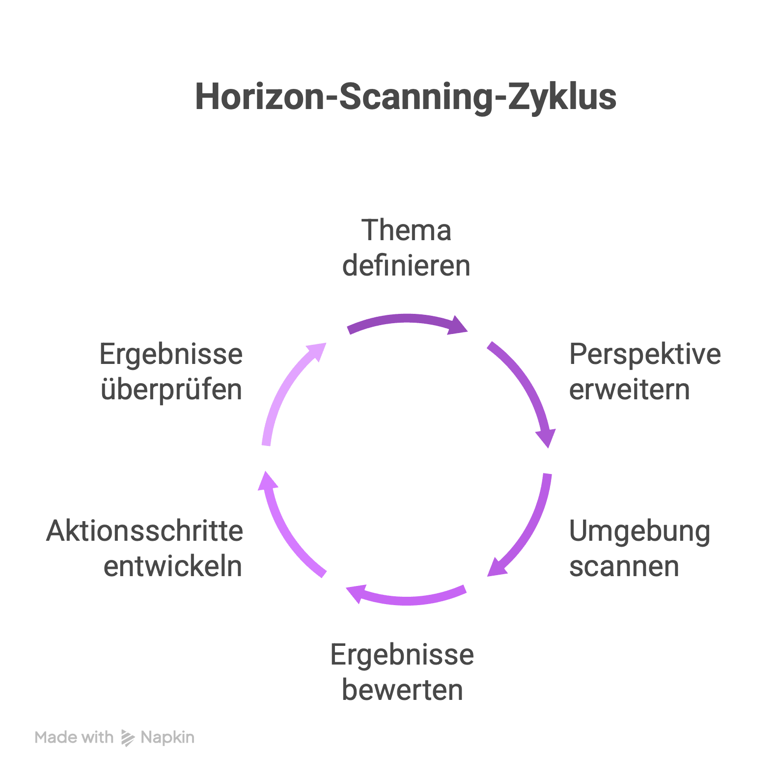 Was ist Horizon Scanning? Alles zu Definition, Prozess & Methoden. Inkl. gratis Template, Praxis-Beispielen und KI-Tools für Ihre Strategie.